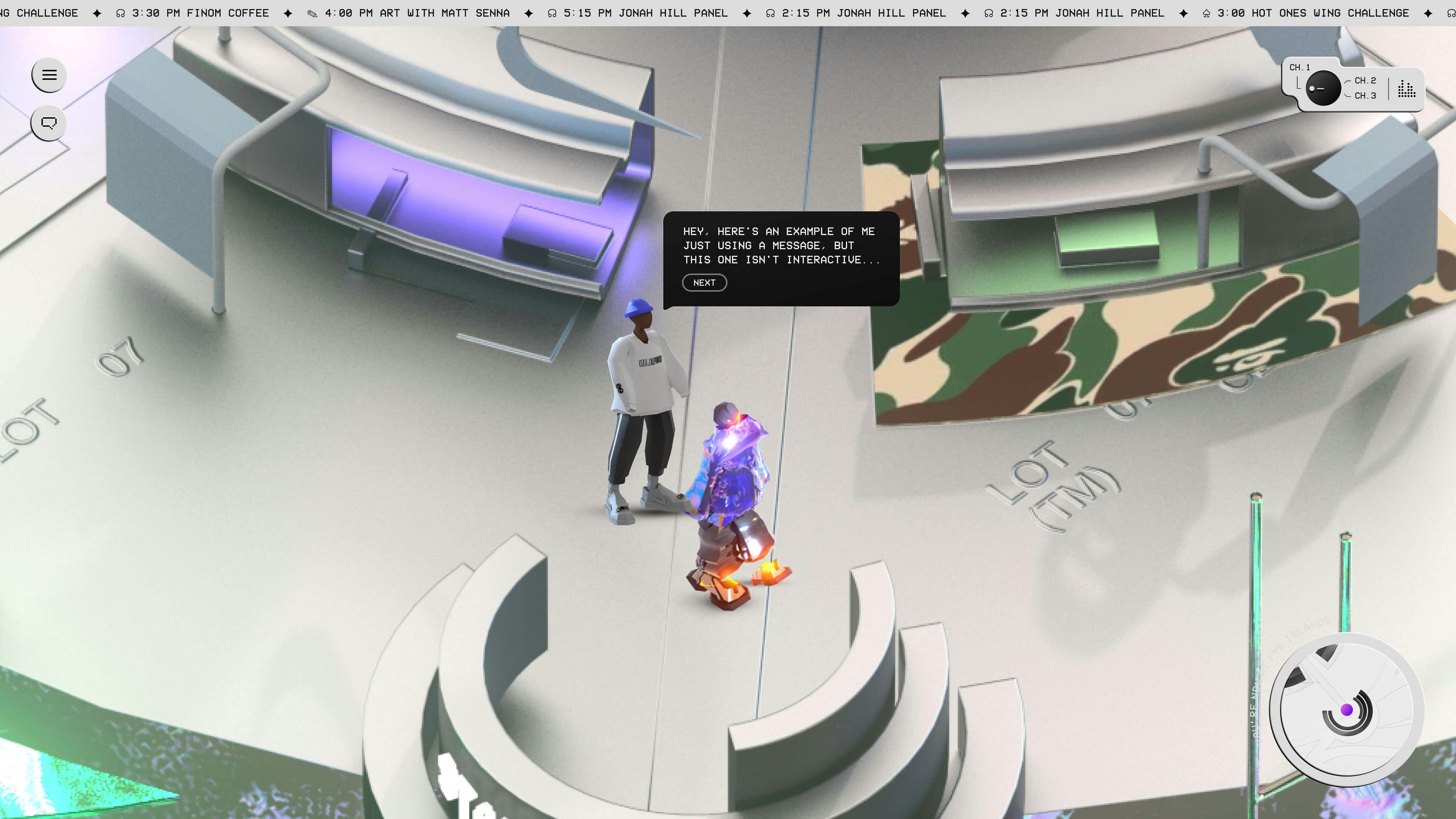 Unlike traditional e‑commerce platforms, ComplexLand was built as a fully immersive WebGL experience, enabling real‑time interactions and allowing users to freely explore the 3D world, engage with brands and discover exclusive content.
